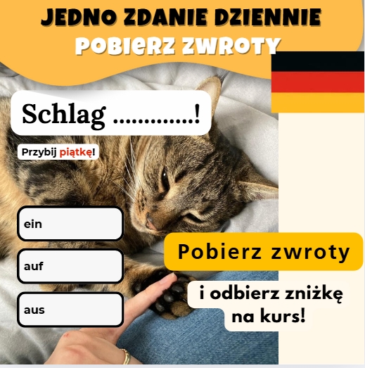 Dziękuję za zapis, poniżej kod zniżkowy i link do pobrania zwrotów z rocznego kursu "jedno zdanie dziennie"