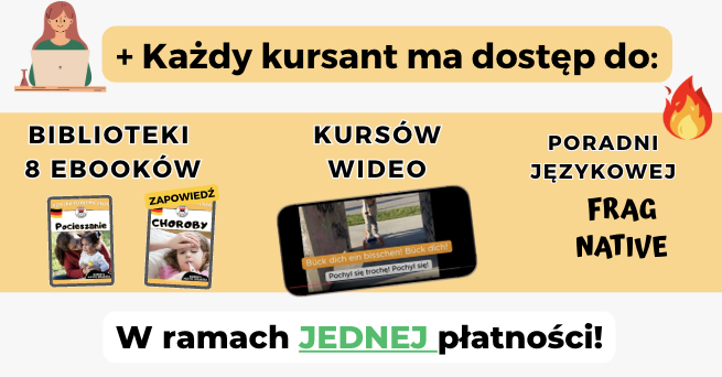 • Dostęp do Deutschflix: BONUS O WARTOŚCI do 1428zł w skali roku. (bibliotrka ebooków, kusy wideo, poradnia językowa)