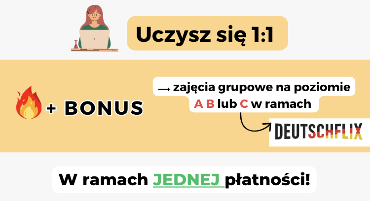 • Dostęp do Deutschflix: BONUS O WARTOŚCI do 1428 zł w skali roku.